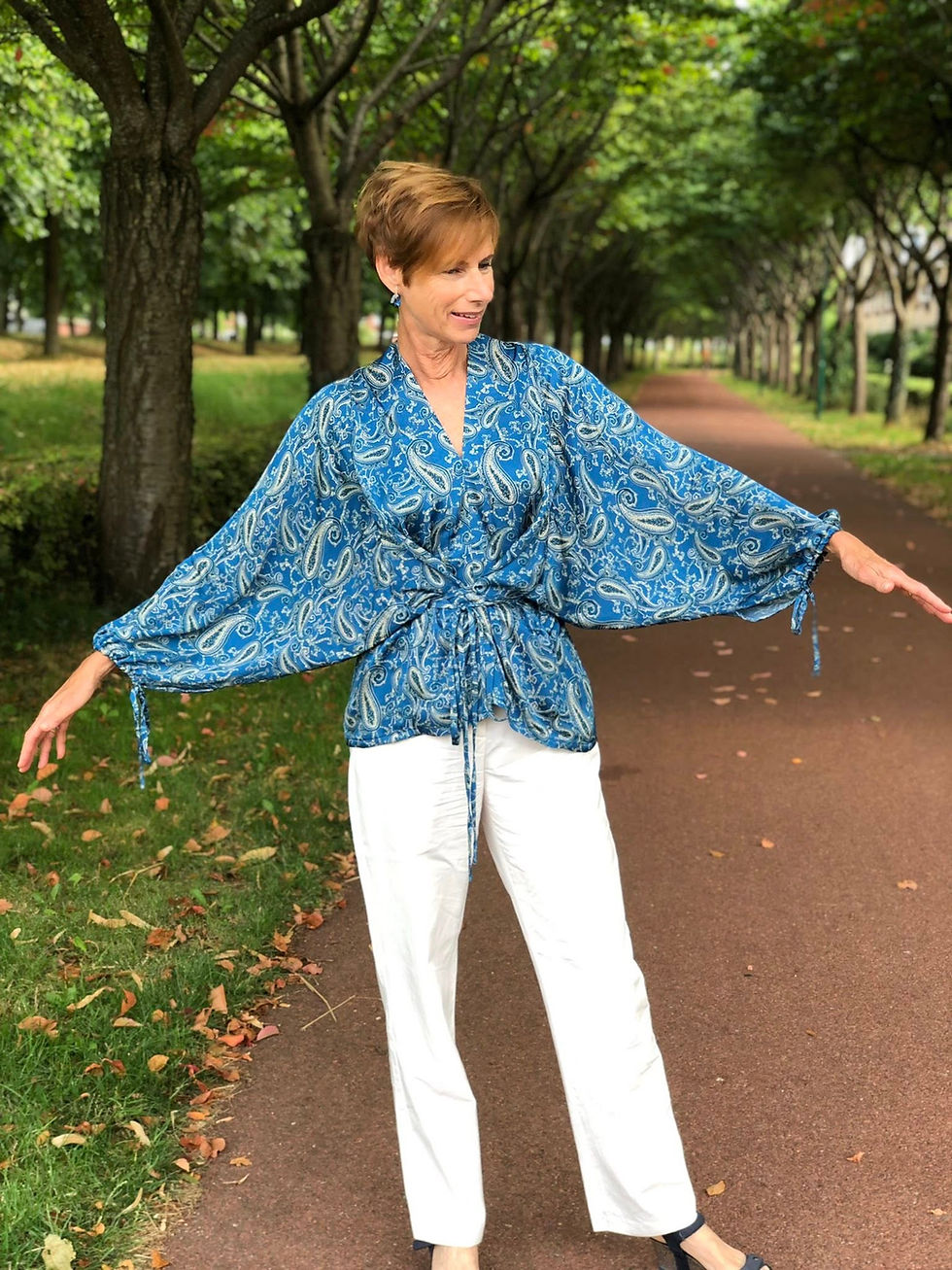 This wrap blouse is a stylish and versatile piece designed for everyday elegance.• Linen: Breathable with a natural texture and structure. Softens with wear.